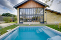 Le jardin accueille une petite piscine chauffée , et une grande terrasse bois idéales pour prolonger la saison estivale.