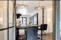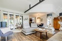 Elle offre une vaste pièce de vie d'environ 53m², lumineuse grâce à ses grandes baies vitrées et équipée d'un poêle. Une cuisine aménagée et équipée au style intemporel, avec de nombreux rangements et une vue agréable sur le jardin prend place avec beaucoup de style et de charme.